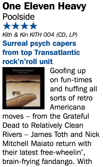 “One Eleven Heavy’s Allman-Brothers-meets-Royal-Trux take on Cosmic American Music here transcends its initial barroom holler for something more mellow and ineffable, if no less intricate, with extraordinary guitar solos erupting from every hidden crevice…” ****