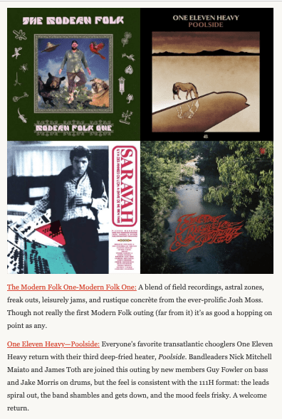 “Everyone’s favorite transatlantic chooglers One Eleven Heavy return with their third deep-fried heater, Poolside. Bandleaders Nick Mitchell Maiato and James Toth are joined this outing by new members Guy Fowler on bass and Jake Morris on drums, but the feel is consistent with the 111H format: the leads spiral out, the band shambles and gets down, and the mood feels frisky. A welcome return.”